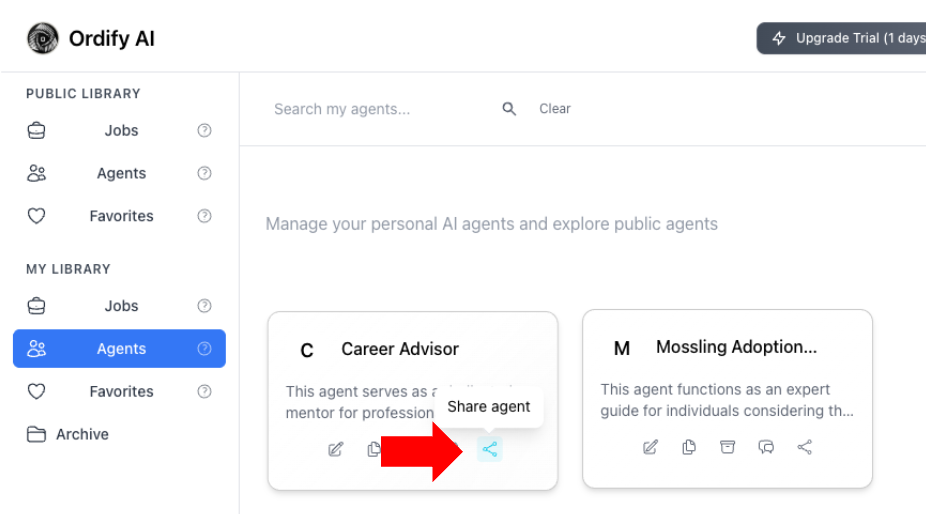 How to share: Go to Library -> My Library/Agents -> Share -> Share Agent. Share it with info@ordify.ai and include your submission note
