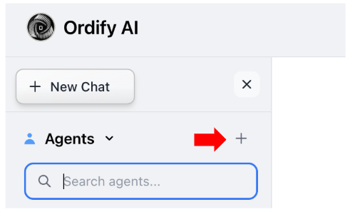 Open the Agent Builder: On Ordify’s chat page, click the + sign next to "Agents," then click the Agent Builder button.